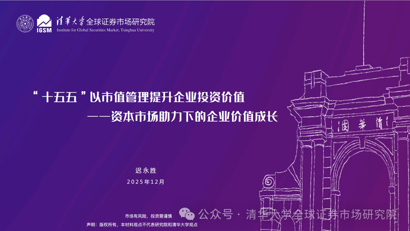清华大学全球证券市场研究院秘书长、院长助理,中国上市公司市值研究团队、ESG研究团队负责人迟永胜应邀作题为“‘十五五’以市值管理提升企业投资价值”的专题演讲。演讲伊始,迟永胜秘书长结合国务院国资委在中央企业负责人会议上强调的“加强中央企业上市公司质量和市值管理”最新工作部署,指出在“十五五”时期,应更加注重通过规范化、制度化的市值管理,引导资本市场资源更好服务实体经济和科技创新。在此基础上,他围绕“十五五”时期民营经济与上市公司高质量发展的总体要求,结合国家关于科技金融、资本市场高质量发展和完善市值管理制度的相关政策,系统阐释了市值管理在服务科技创新、引导中长期资金配置、提升企业投资价值和增强资本市场运行效率中的重要作用。他介绍了研究团队在市值管理制度体系建设、企业价值成长路径及科技赋能市值管理等方面的研究进展,并结合上市公司和央国企的实践案例,分析了市值管理在促进科技创新成果转化、优化资源配置和增强资本市场韧性中的现实成效。迟永胜秘书长表示,在“十五五”战略背景下,应坚持系统化、长期主义的市值管理理念,推动企业治理能力与价值创造能力协同提升,实现由单一价值创造向系统价值管理的转变,更好服务民营经济发展和实体经济高质量增长。