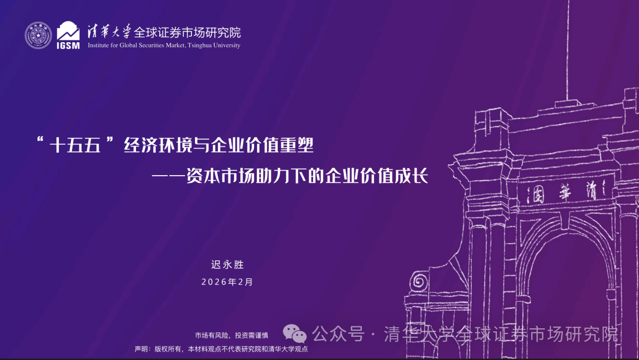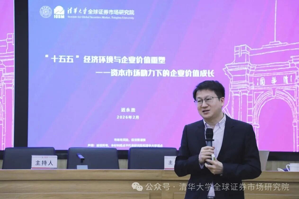 分享最后,迟永胜秘书长简要介绍了研究院在资本市场政策研究、市值管理、科技创新等领域的研究成果。作为清华大学校级研究机构,研究院长期聚焦资本市场服务实体经济与现代化产业体系建设,重点围绕“十五五”时期资本市场制度完善、科创与产业升级协同发展等重大问题开展研究,持续为相关政策制定和实践探索提供理论与智力支撑。依托上市公司研究、市值管理制度分析等领域的专业积累,研究院已助力若干地方政府和上市公司发展,正在对接更多地方政府、产业园区和科技型企业,通过政策研究、科创赋能、资本赋能等务实合作,提升地方资本市场资源配置效率,助力资本市场更好培育地方新质生产力,推动中国式现代化实现。